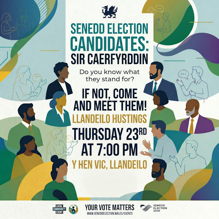 Thursday 23rd April 7pm, yr Hen Vic, Llandeilo Meet your candidates, question them directly and discuss key issues. All parties and Independent candidates invited.