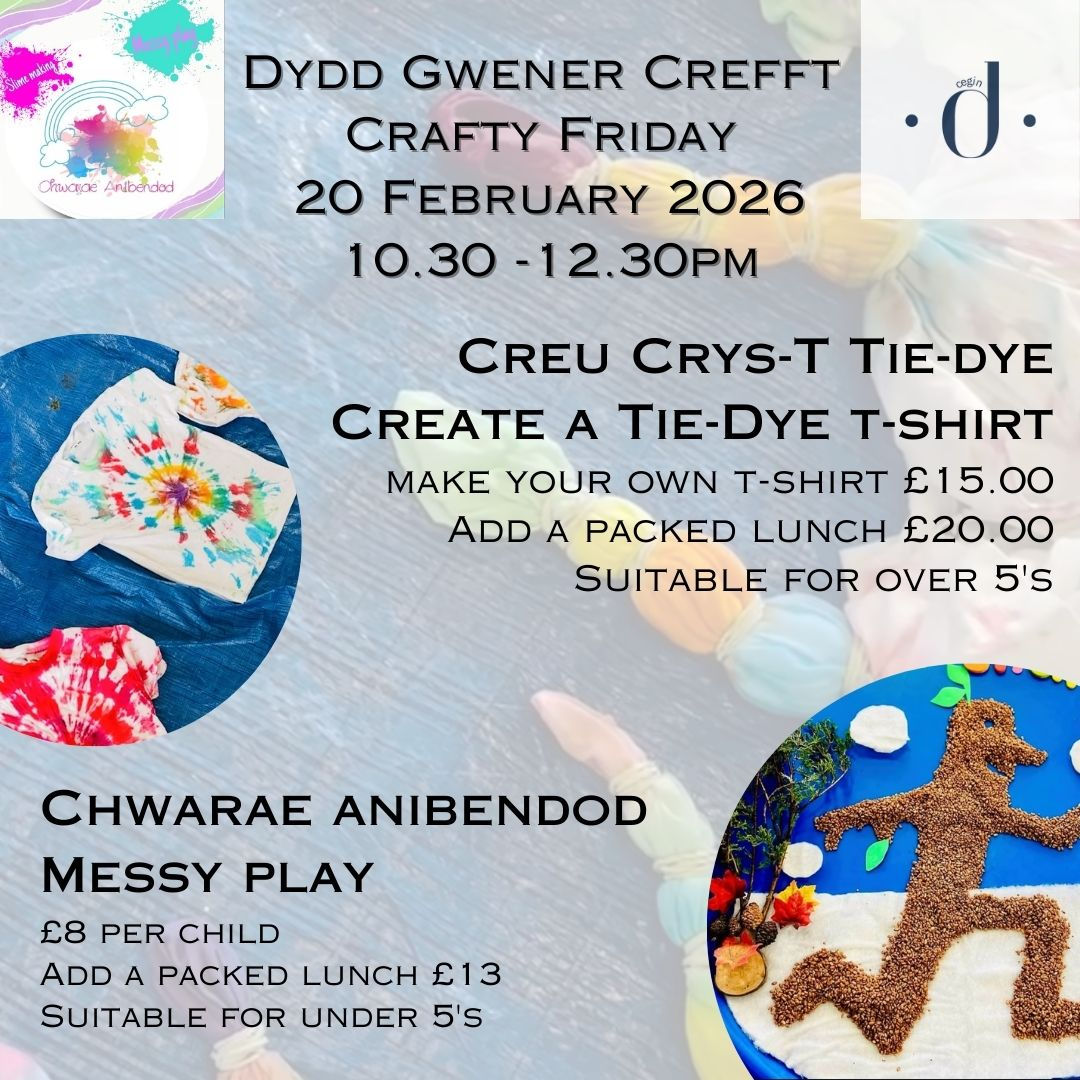 Please not the messy play is for under 5’s and the tie-dye session for over 5’s but will run alongside each other.